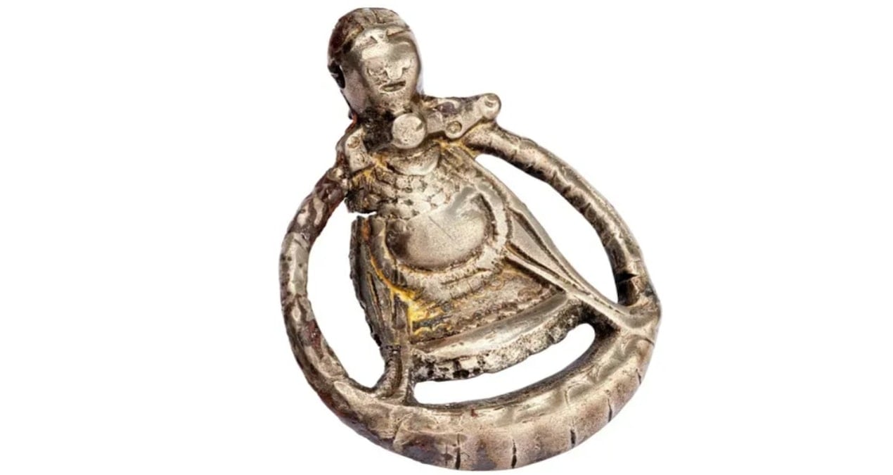 İsveç’te bir Viking Çağı mezarında keşfedilen yuvarlak gümüş bir kolye ucu, şimdiye dek bilinen tek hamile Viking kadın tasviri olmasıyla dikkat çekiyor.